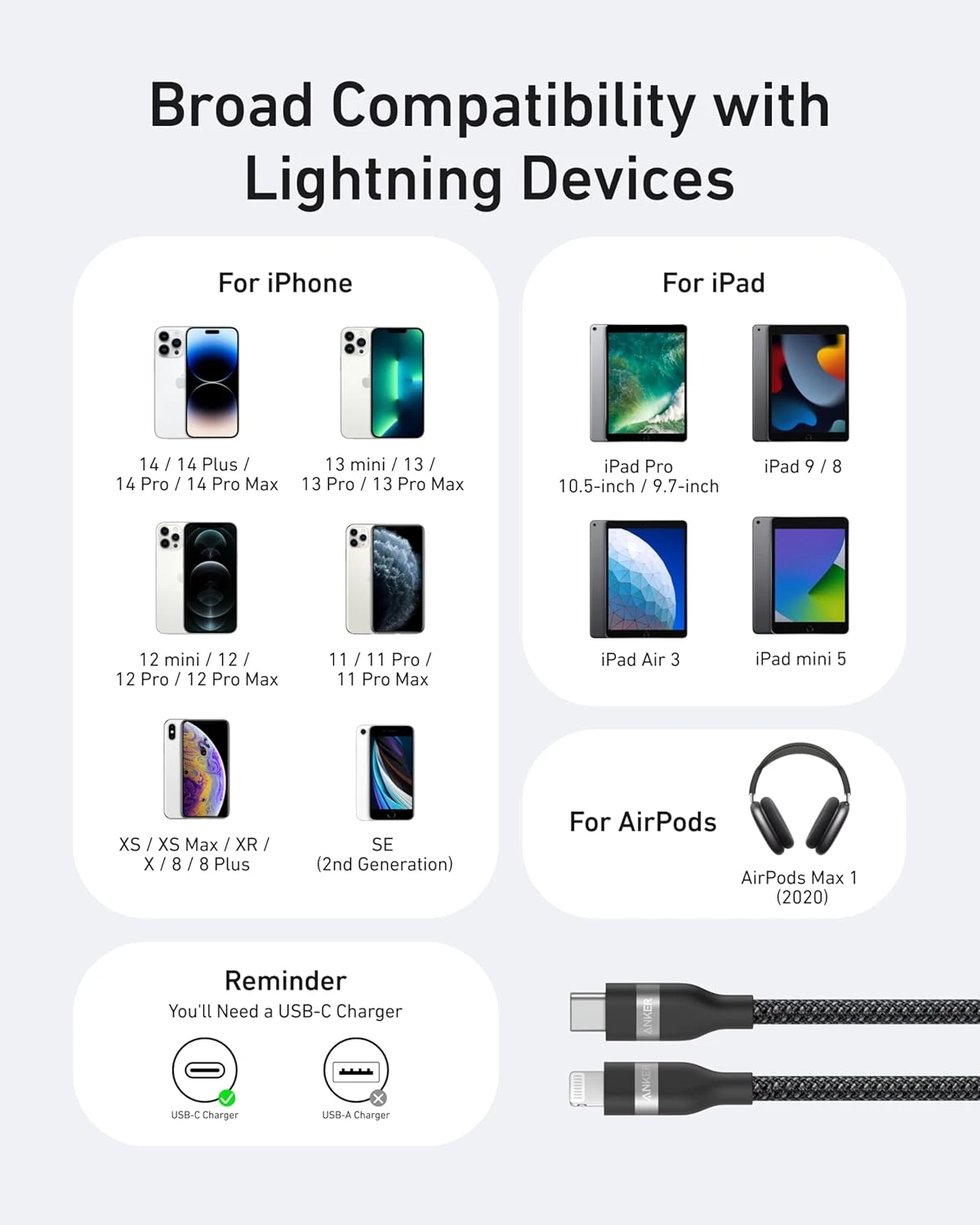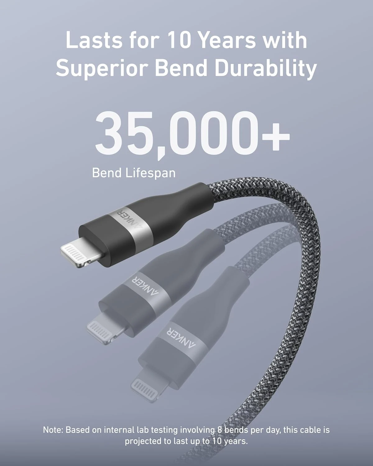 Experience lightning-fast charging with the Anker USB-C to Lightning Cable, designed to boost your iPhone 14 to 50% in just 25 minutes. This 3-foot cable features a tangle-free upcycled braided design that unfolds smoothly and packs away easily. Built to last, it can withstand over 35,000 bends, offering up to 10 years of reliable use. MFi-certified and made from 100% recycled materials, it combines safety, durability, and environmental responsibility for your charging needs.