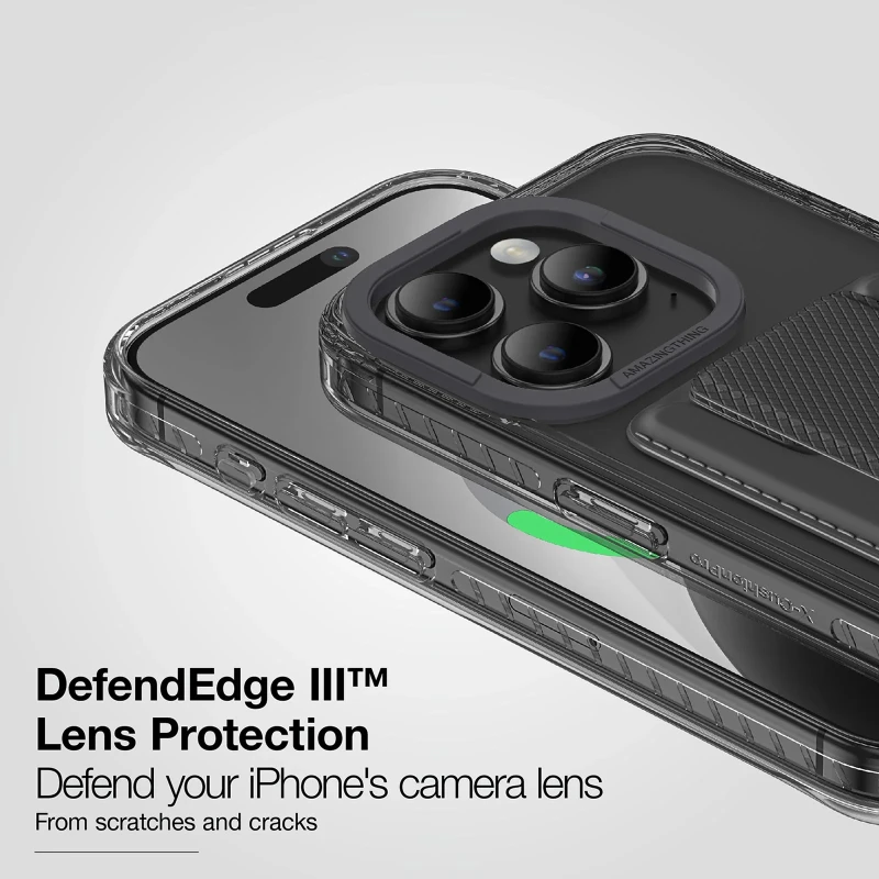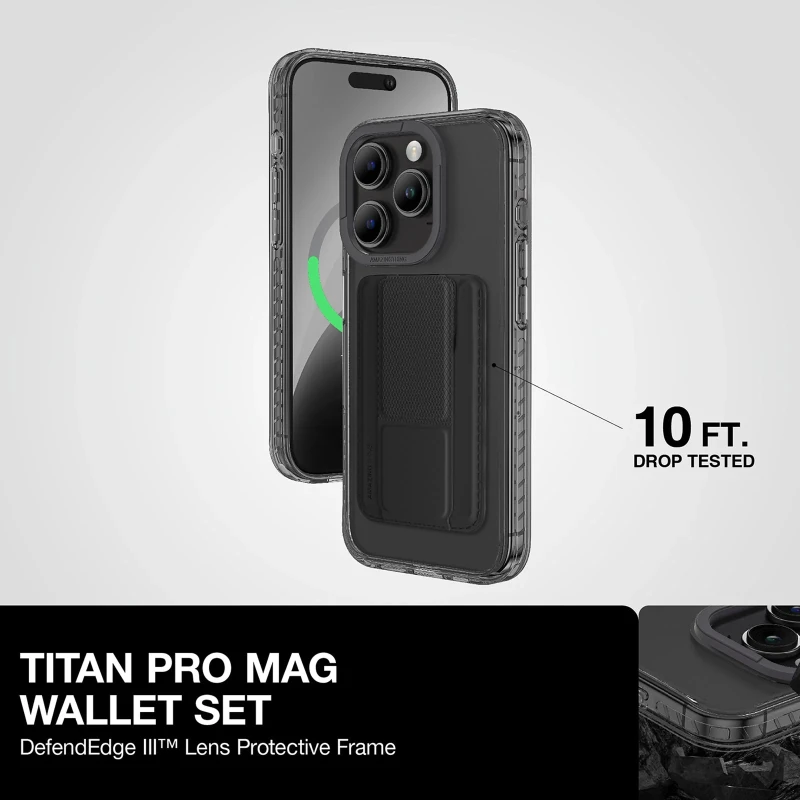 The AmazingThing Titan Pro Mag Wallet Case offers premium protection and versatile functionality for your iPhone 15 Pro. Built with German anti-yellowing transparent material, it resists clouding and discoloration while maintaining a crystal-clear look. X-Cushion Pro IV technology absorbs shocks effectively, while Defend Edge III provides complete camera lens protection. The built-in multi-angle stand supports both portrait and landscape modes for comfortable viewing, and the raised bezel safeguards your screen against drops and scratches.