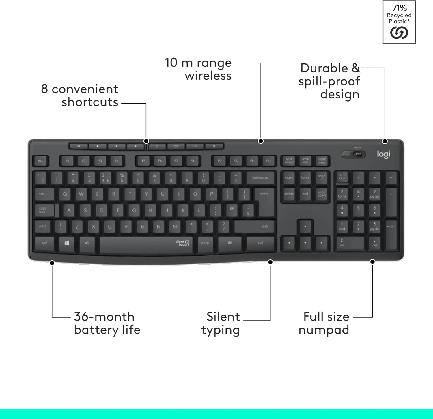 SilentTouch Technology: Over 90% noise reduction for peaceful typing and clicking.