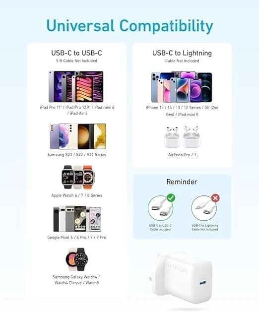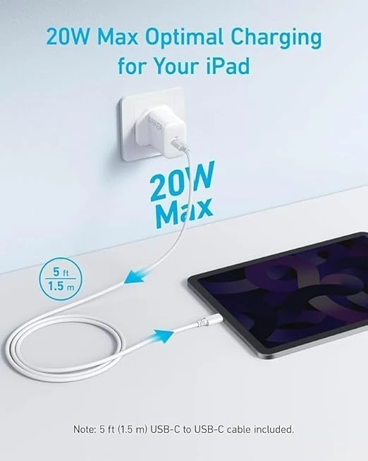 The Anker 20W USB-C Wall Charger is designed to deliver fast, efficient, and safe charging for your devices. Its 20W maximum power output allows you to charge an iPhone 14 to 50% in just 30 minutes and ensures an optimal experience for your iPad. Compact and sleek, this charger saves space on your desk or in your travel bag while providing reliable power. With Anker’s MultiProtect safety system, your devices are protected from overcharging, overheating, and other potential hazards, giving you a worry-free charging experience.