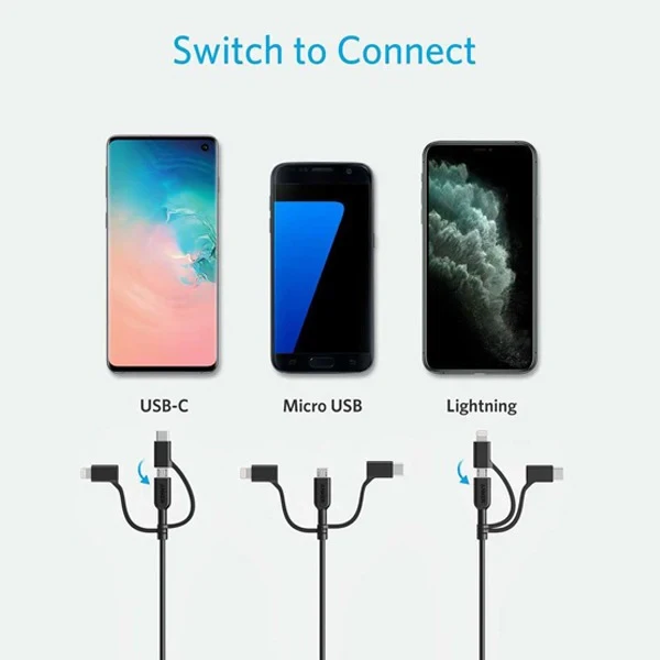 Universal Compatibility: Lightning, Type C, and Micro USB connectors cater to iPhones, Android smartphones, and more.