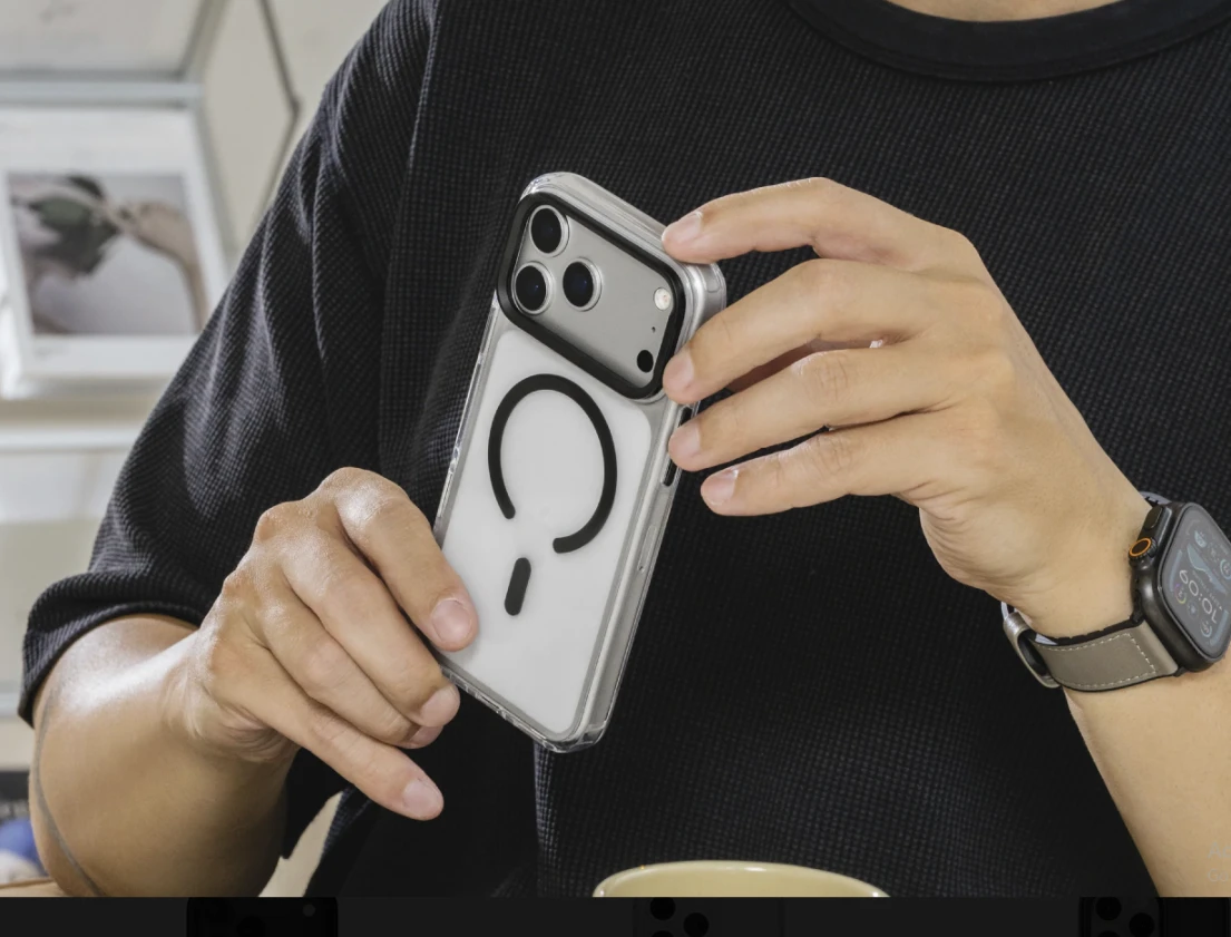 The SwitcEasy LenStand M Case is designed for flexible functionality and strong protection. Featuring a foldable stand with a 60° adjustable hinge, it supports both portrait and landscape orientations without disrupting daily use. Reinforced with raised edges and a sturdy metal lens frame, it keeps your screen and camera safe from scratches and impact. Certified with U.S. military-grade 10-foot drop protection, it ensures durability and peace of mind. The built-in magnetic ring enables full compatibility with MagSafe accessories, while the precise cutouts maintain smooth camera control and comfortable handling.