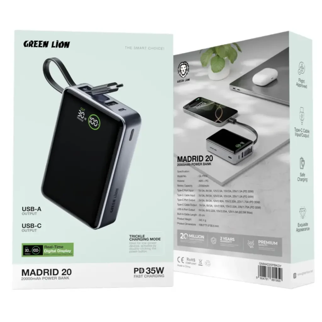 Stay powered on the go with Green Lion Madrid 20 Power Bank