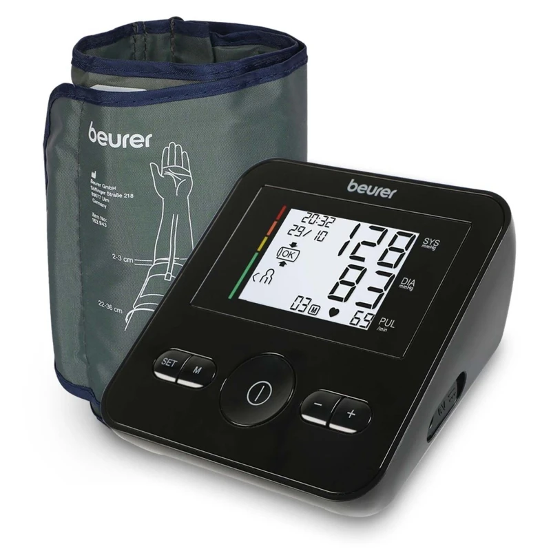 The Beurer BM30 Upper Arm Blood Pressure Monitor makes home health monitoring simple, accurate, and reliable. Designed with seniors and families in mind, this clinically validated device ensures precise readings with ease of use. It features a large display, fully automatic operation, and intelligent data tracking. The BM30 detects arrhythmia, includes a risk indicator with a colored scale, and stores up to 30 readings for four different users. With a comfortable cuff suitable for 22–36 cm arm circumferences, it’s the perfect choice for preventive health care at home.