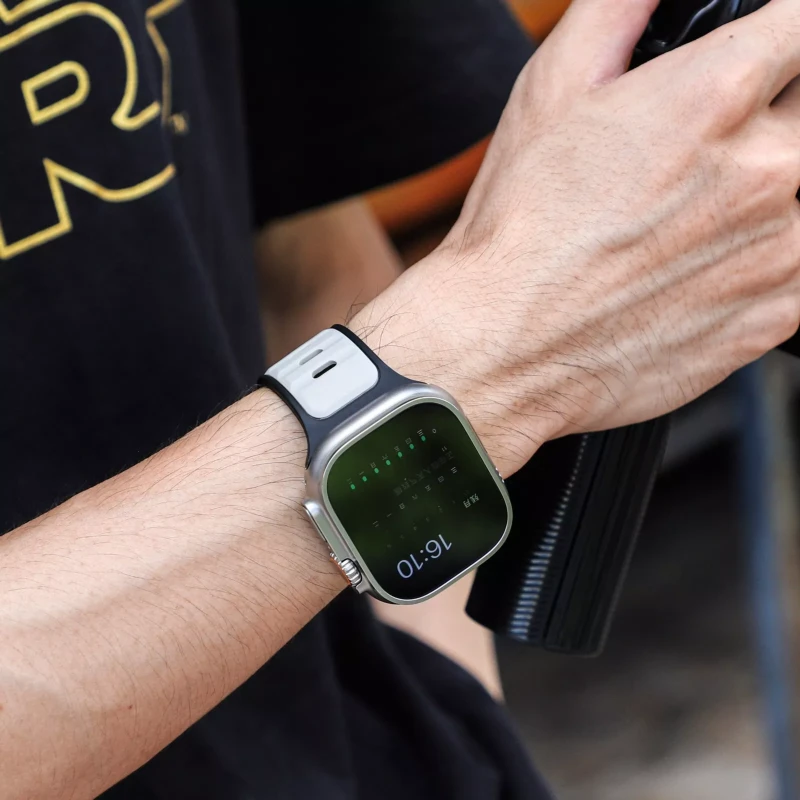 Dual-Tone Apple Watch Silicone Band 42/44/45/46/49MM - Silver/Black
