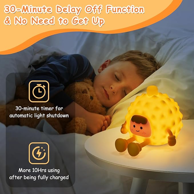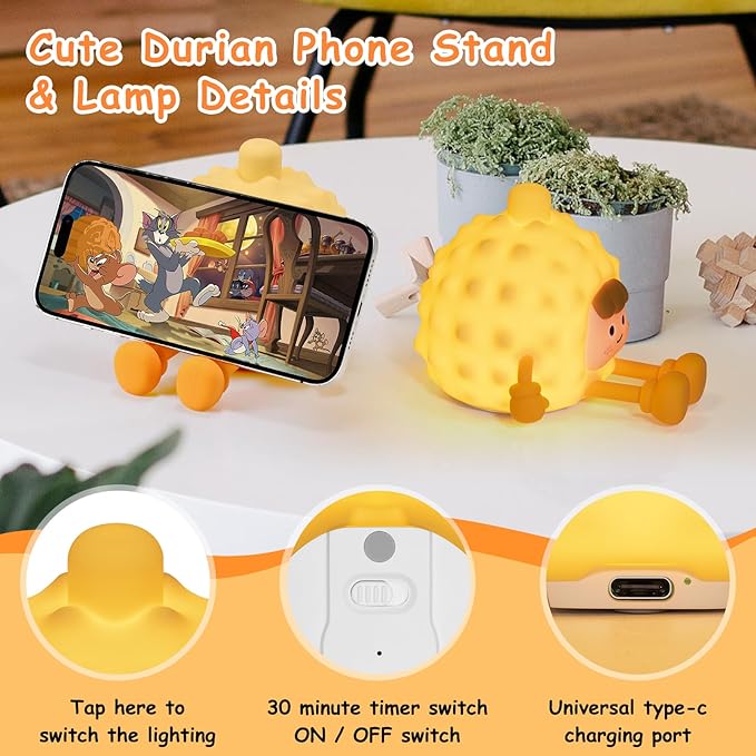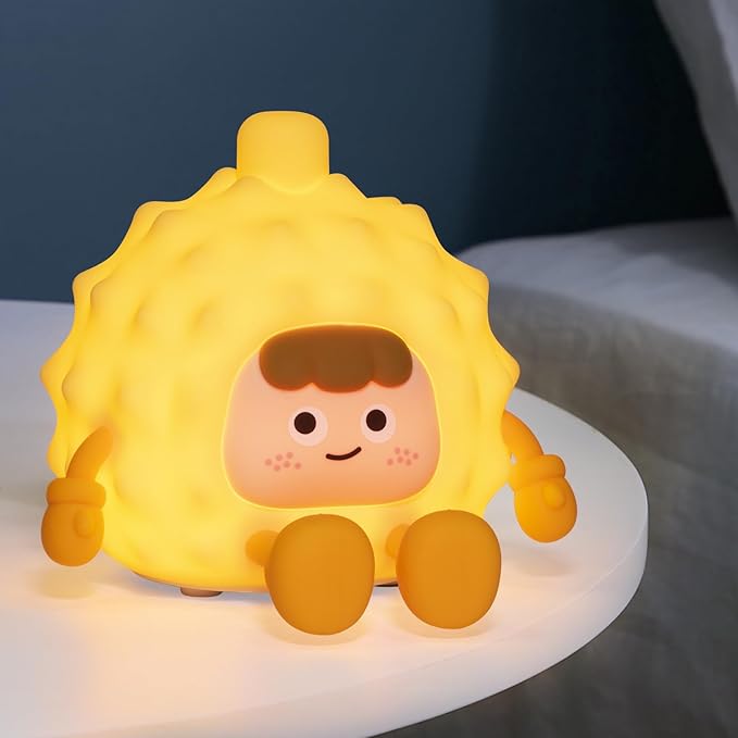 Bring comfort and fun to bedtime with this adorable durian-shaped night light. Made from soft, kid-safe silicone, it features 3 levels of adjustable warm light controlled by a simple tap.Perfect for nurseries, bedrooms, or as a quirky gift, this touch-sensitive lamp is both cute and practical—ideal for babies, toddlers, and kids. Features: Adorable Durian Design – Fun and unique look kids love 3 Brightness Levels – Adjustable warm light for any time of night Touch Control – Tap to turn on/off or change brightnessSafe, Soft Silicone – BPA-free, squeezable, and gentle for little hands Rechargeable Battery – Long-lasting use, USB charging included Great Gift Idea – Perfect for baby showers, birthdays, and holidays A fun and functional bedside companion for peaceful nights.