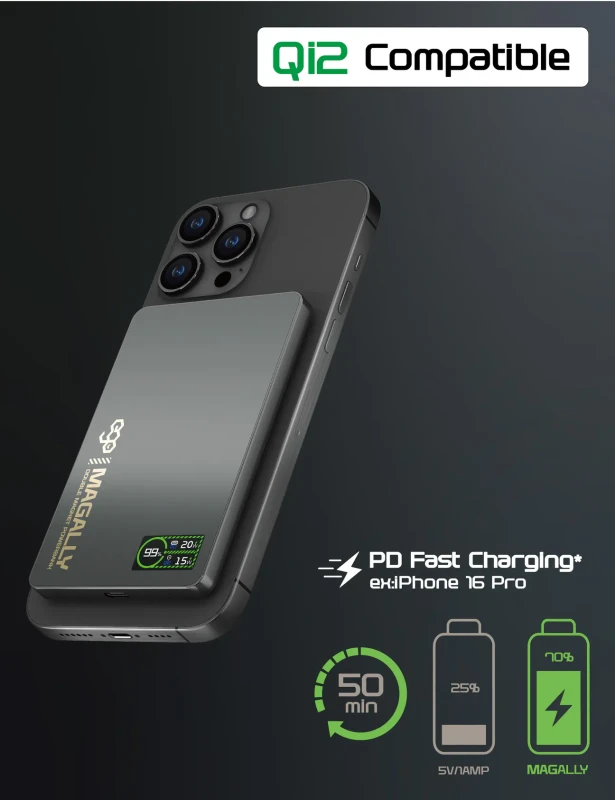 EGO MagAlly 3in1 Magnetic Qi2 Powerbank 5000mAh is a smart magnetic power bank designed for iPhones.