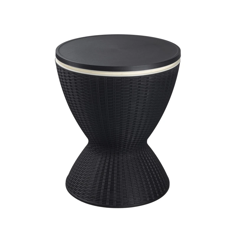 The El Baba Portable Outdoor Ice Cooler Table is the ultimate party companion, combining functionality, style, and durability. With its pop-up bar design and hidden 8-gallon cooler, it can chill up to 40 cans, keeping your drinks cold and within reach. Built from rust-proof resin with a rattan-look finish, it withstands all weather conditions while blending seamlessly with outdoor décor. Easy to clean with its built-in drainage plug, this table is perfect for poolside gatherings, parties, and barbecues. Use it as a coffee table when closed or a bar table when raised, offering versatility and convenience for any outdoor occasion.