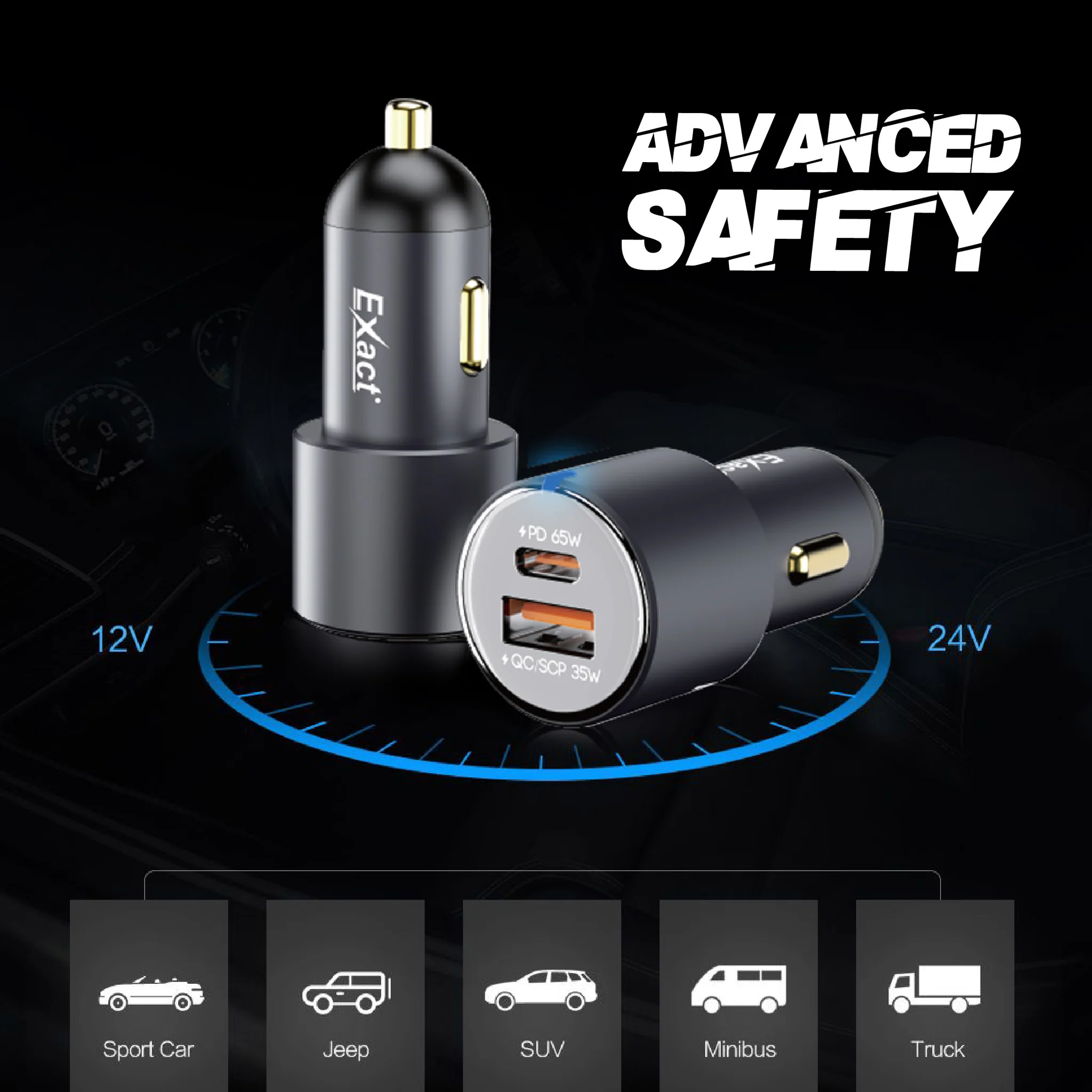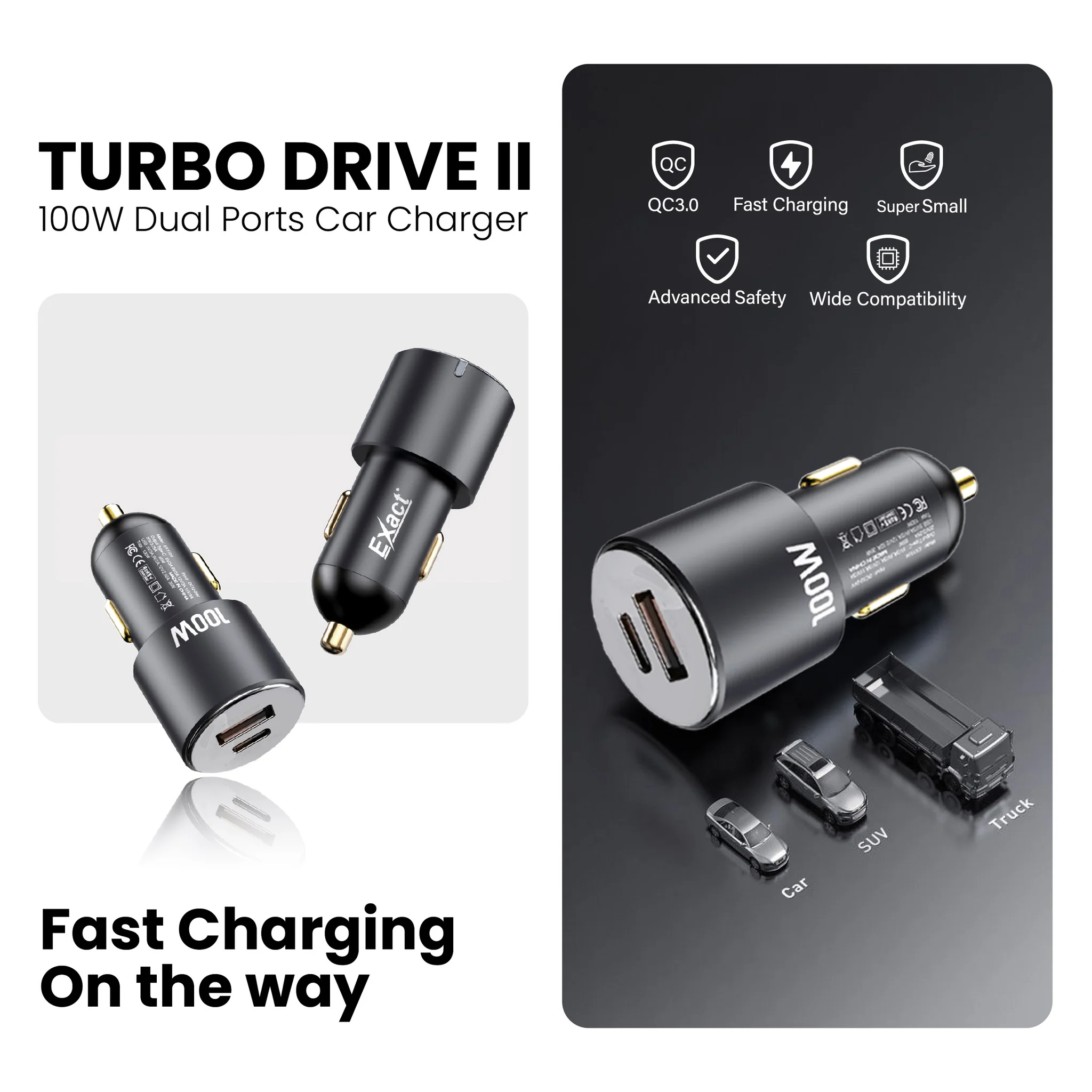 Exact Turbo Drive II Dual Ports 100W Car Charger (EX1104) Black