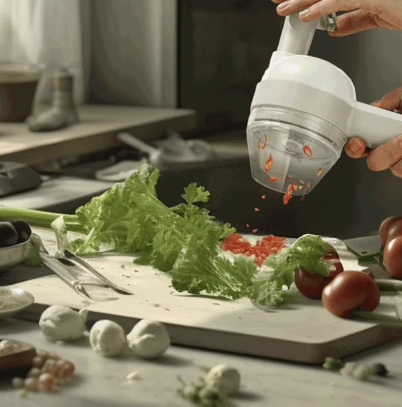 4-in-1 cordless food chopper for peeling, chopping, slicing, and dicing