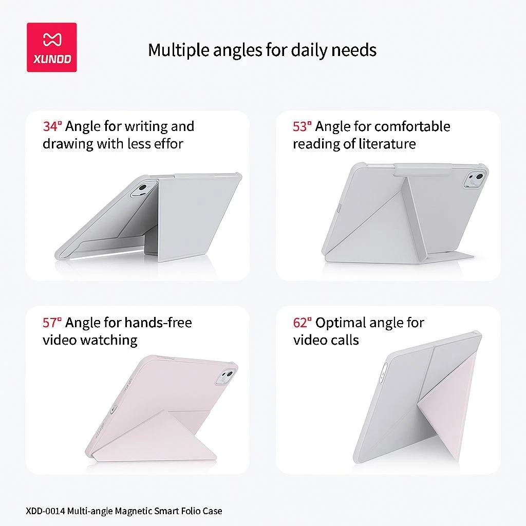 Protect your iPad with style and functionality using the XUNDD Magnetic Smart Folio Case. Crafted from premium PC+PU material, this case ensures durable protection against scratches and bumps while keeping your iPad slim and lightweight. The magnetic design supports auto sleep/wake and provides a secure hold, while the foldable X-cover stand offers multiple viewing angles for comfort in any situation. With a raised camera lip and magnetic pen holder, it’s built to match your daily needs.
