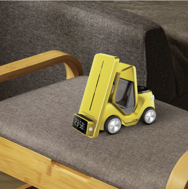 Introducing the ultimate convenience in charging technology; the Green Lion Forklift 5-in-1 Wireless Charger. This sleek and innovative device combines the power to charge your smartphone, smartwatch, and earbuds simultaneously, all while doubling up as a digital clock and night light. With a charging capacity of 15W for your smartphone, 2.5W for your smartwatch, and 5W for your earbuds, this versatile charger ensures speedy and efficient charging for all your devices. But that's not all! The unique forklift-shaped design adds a touch of playful charm to any space, making it an eye-catching addition to your home or office. Say goodbye to messy cables and embrace the convenience of a single, multipurpose charging solution that keeps your devices powered up while keeping you on schedule with its digital clock display and creating a soothing ambiance with its built-in night light. Features: Digital Clock Forklift Design Compact Night Light Wireless Charging Fast Charging