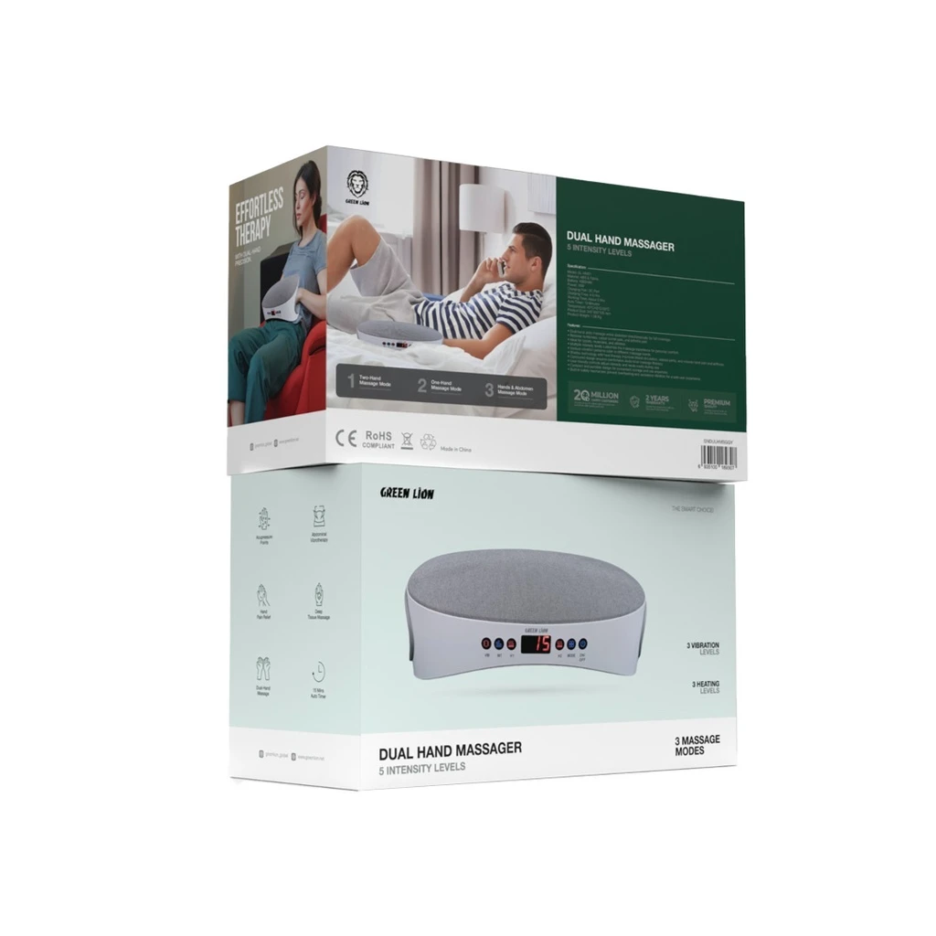 Green Lion Dual Hand Massager 5 Intensity Level - Gray