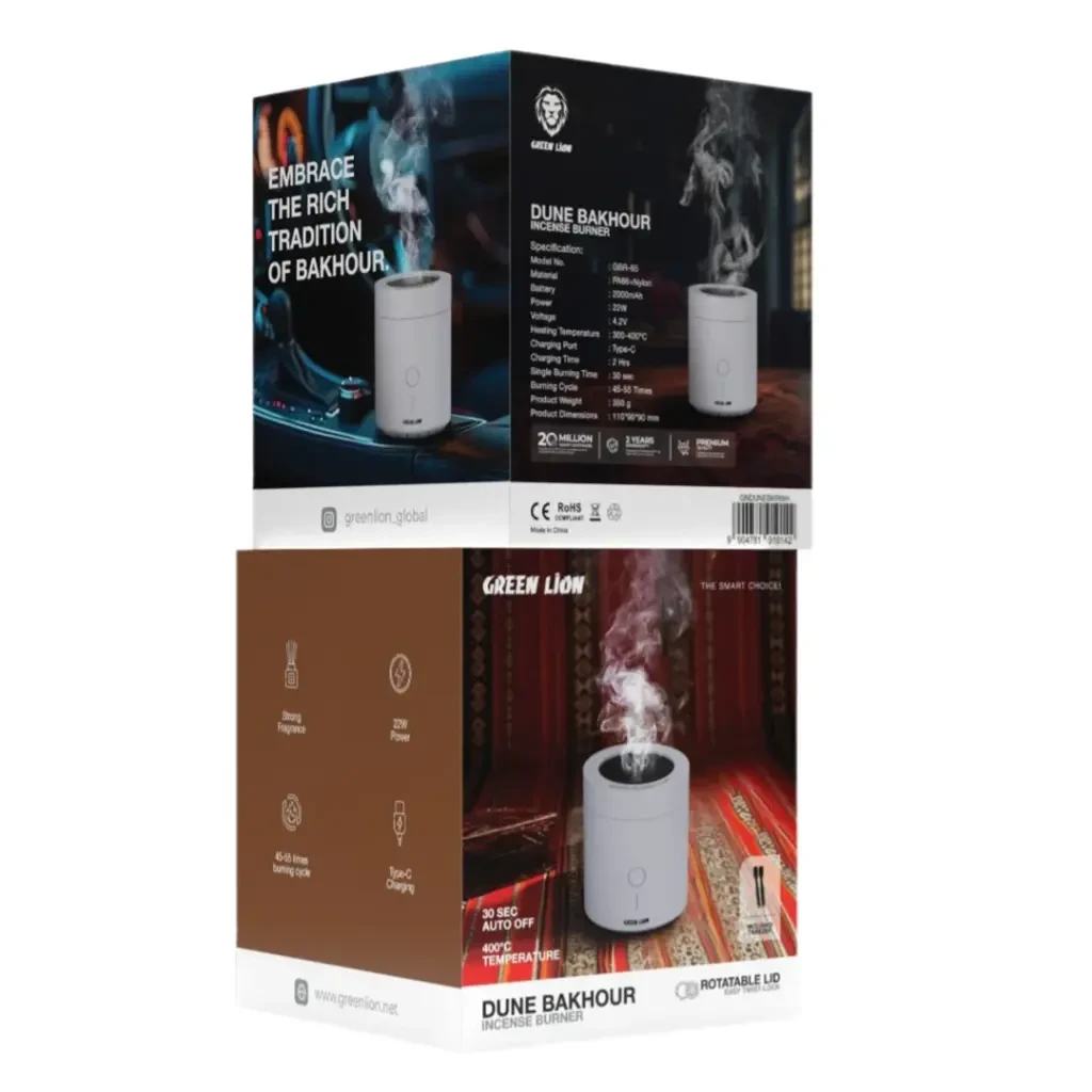 Green Lion Dune Bakhour Incense Burner is made to advance your incense experience with today's technology and contemporary style. Made of long lasting PA66 Nylon, it features a 2000mAh battery capable of 45-55 burning cycles per charge.