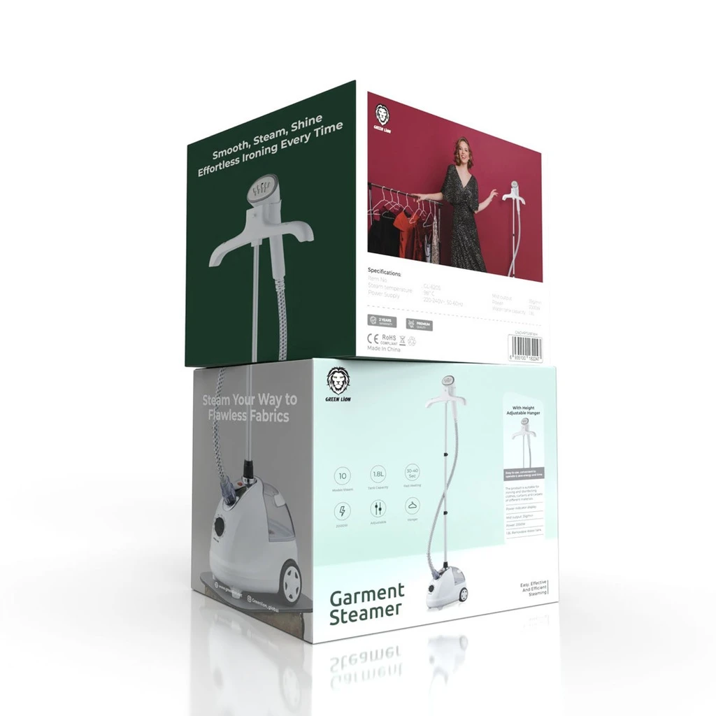 The Green Lion Portable Household Garment Steamer delivers powerful and versatile steaming for all fabric types. With 10 steam modes and fast heating in just 30–40 seconds, it ensures your clothes are wrinkle-free in no time. The 2000W power output and 35g/min steam flow effectively remove wrinkles while the 1.8L removable water tank allows longer use without frequent refills. A built-in hanger makes steaming and hanging clothes easy, and the 98°C steam temperature not only smooths fabric but also sterilizes for added freshness.