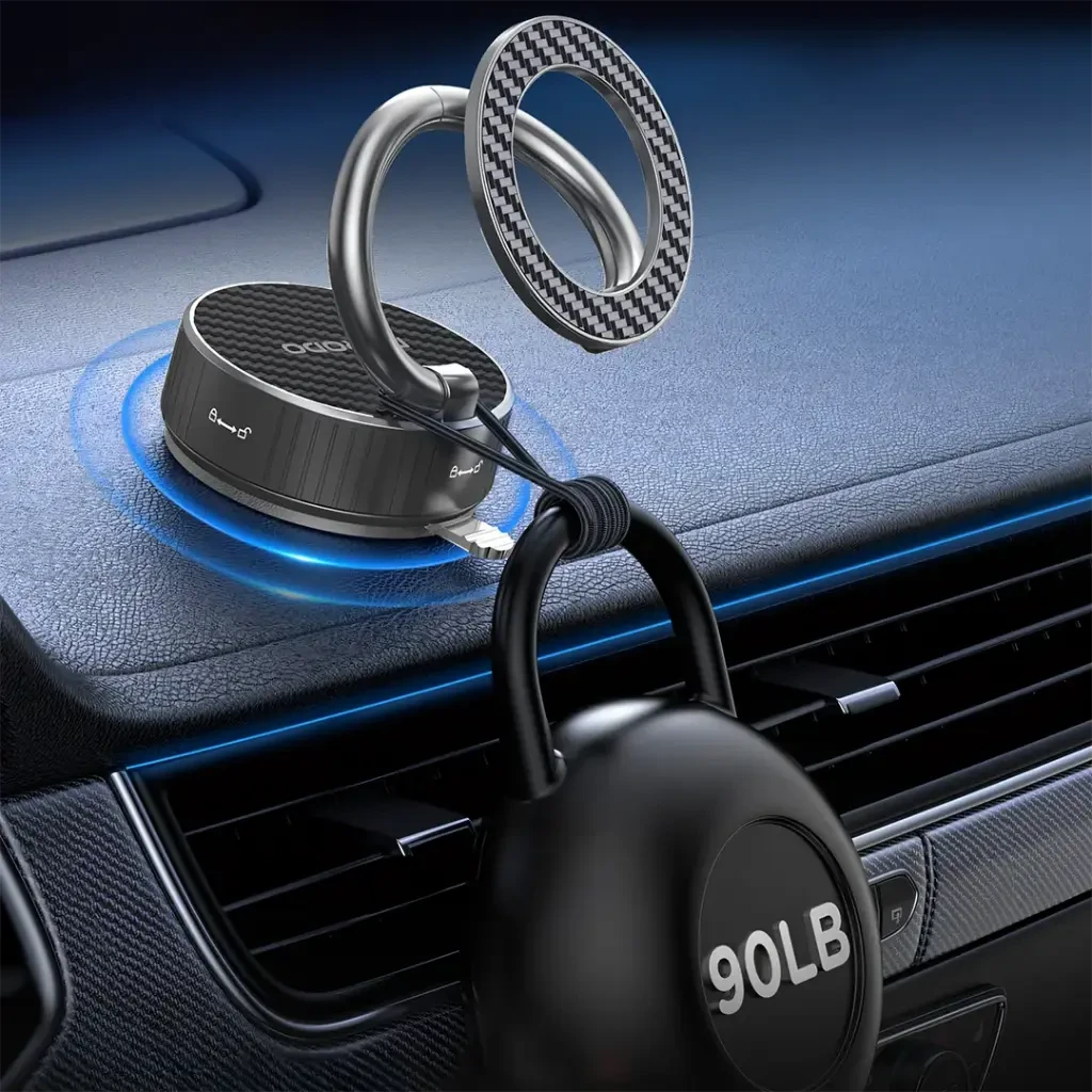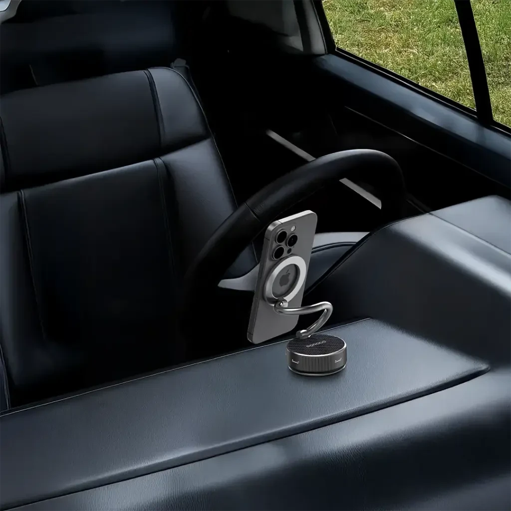 The Porodo MagCurve Suction Phone Mount is designed to keep your phone secure and easy to view while driving. With powerful N52 magnets, it delivers a strong magnetic hold that keeps your device steady even on bumpy roads. The 360° rotating base and adjustable arm let you quickly fine-tune the viewing angle for navigation, calls, or music control. Compatible with phones from 4.7" to 6.7", it fits most smartphones, and the one-hand mount and release make it simple to use without losing focus on the road. The suction base attaches firmly to most flat surfaces in the car, while the durable, scratch-resistant design offers long-lasting daily use and safer, more comfortable driving.