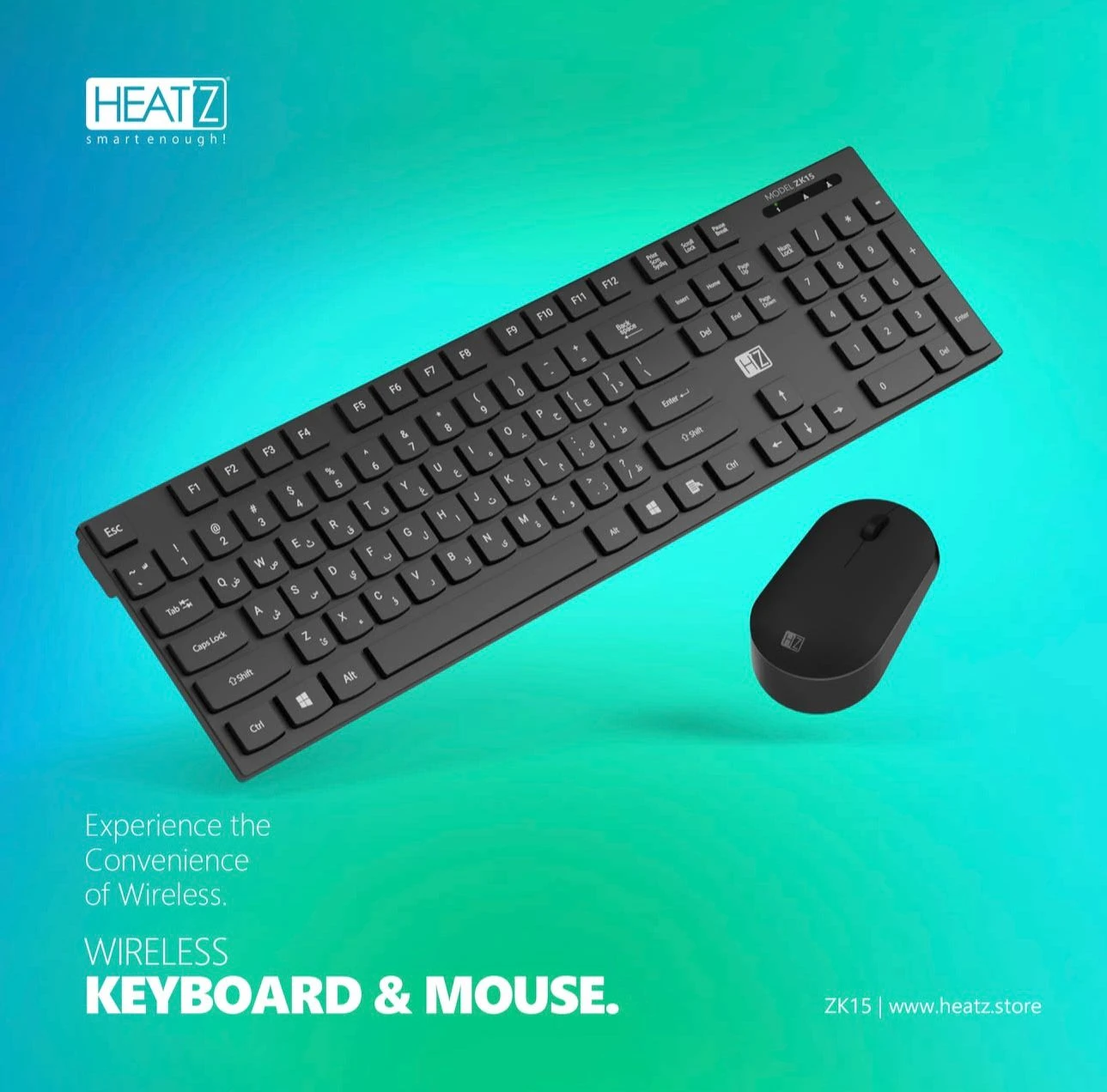 The Heatz ZK15 ARG. Wireless Combo Keyboard & Mouse delivers reliable performance and sleek design for both home and office users. With dual English and Arabic keys, it ensures effortless typing for bilingual users. The wireless connection reaches up to 10 meters, and the compact mouse provides high precision with 1600 DPI. Designed with comfort, durability, and compatibility in mind, this combo makes everyday computing smooth and efficient.