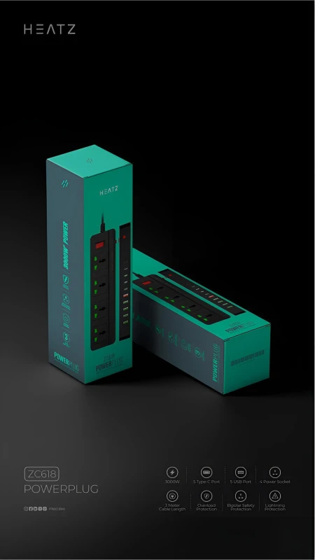The HEATZ ZC618 POWERPLUG is a powerful and versatile charging solution designed to meet all your power needs. With a robust 3000W capacity, it features multiple ports including Type-C, USB, and power sockets, making it ideal for home, office, and entertainment setups. Its advanced safety protections ensure secure and reliable usage, while the 3-meter cable provides flexibility in placement.