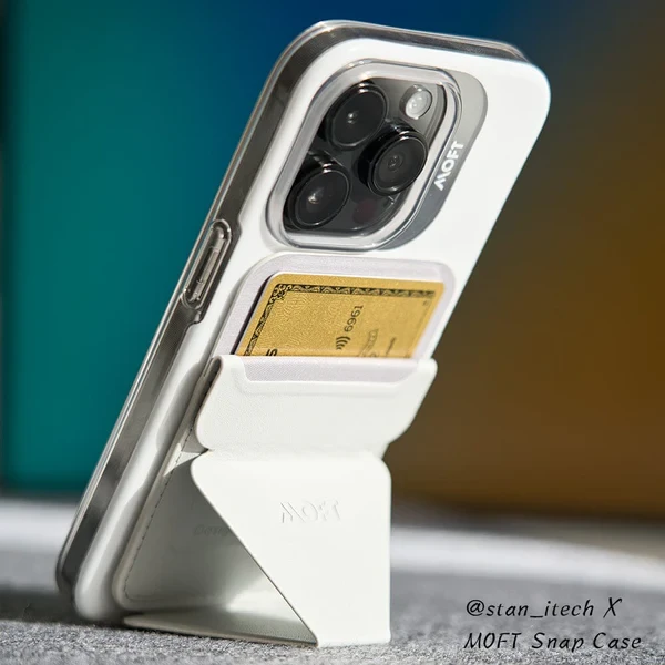 The MOFT Snap case for iPhone 15 Pro Max combines sleek protection with smart functionality. Featuring enhanced MagSafe support for secure attachment with compatible wireless chargers and a built-in stand to prop up your phone for video or calls, this clear white case keeps your device safe while showing off its style.