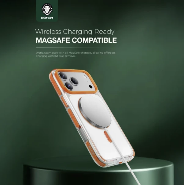 The Green Lion Southend MagSafe KickStand Case for iPhone 17 Pro Max combines strong protection, clean style, and smart functionality in one everyday-ready cover. Built from a hybrid mix of TPU, PC, and TPE, it delivers military-grade impact resistance against drops, bends, and scratches, while the reinforced camera section gives extra shock absorption around the lenses. Fully MagSafe-compatible with powerful N52 magnets (3000 Gauss), it locks onto MagSafe chargers and accessories with precise alignment and a strong hold. The built-in rotating metal ring stand lets you use your phone hands-free in any orientation—vertical, horizontal, or tilted—for calls, videos, or gaming. Durable metal buttons give a solid, tactile click, and the anti-fingerprint finish keeps the case looking sleek and clean throughout daily use.
