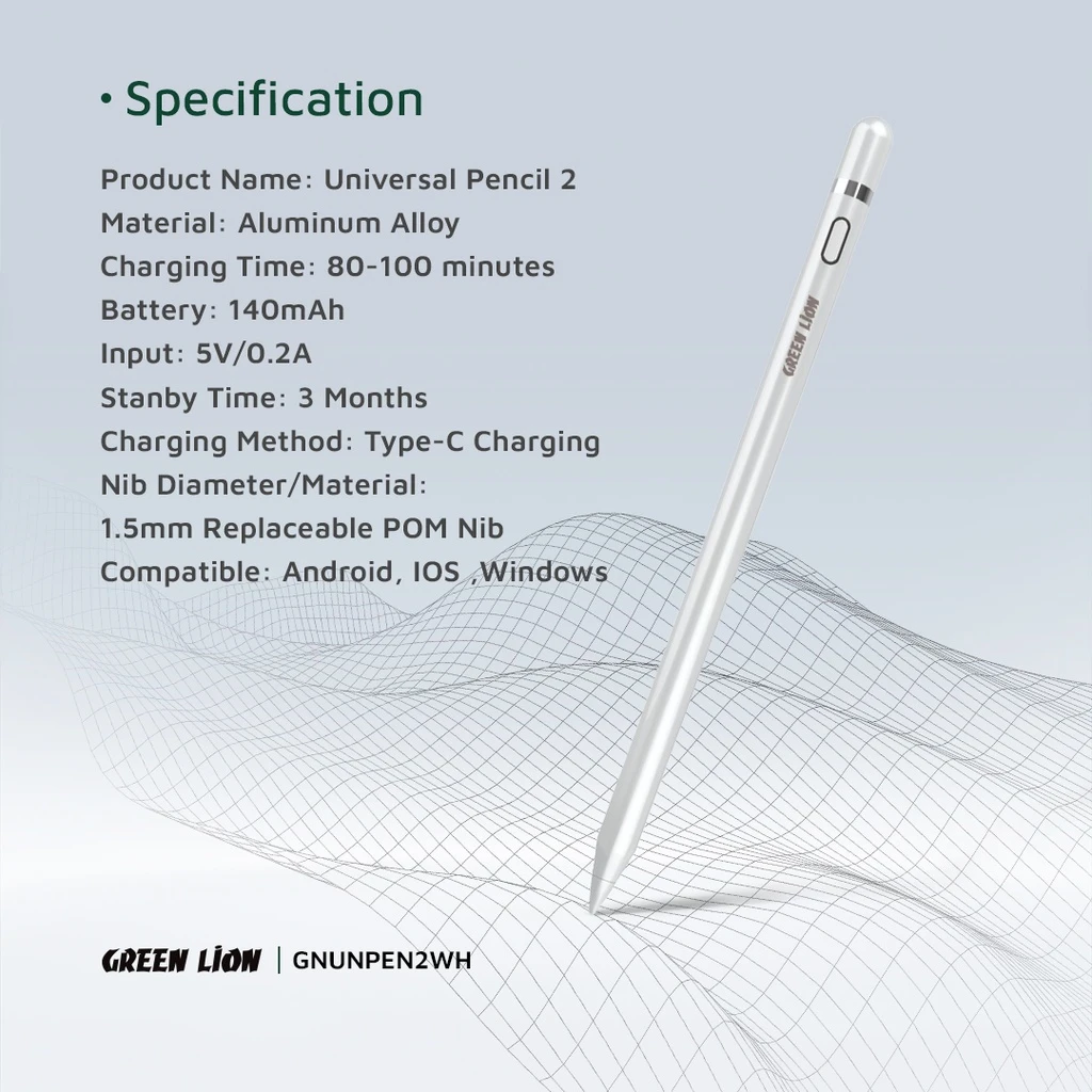 This stylus is designed to deliver smooth and effortless movement across your device’s screen, making it ideal for precise writing and drawing. Built with a durable aluminum alloy body, it offers a solid yet comfortable feel during use. The fine 1.5 mm nib is made from high-quality POM material, ensuring smooth gliding and long-lasting performance. With an impressive standby time of up to 3 months, the stylus is always ready when you need it. Type-C charging makes recharging quick and convenient, and the replaceable nib helps maintain optimal performance over time.