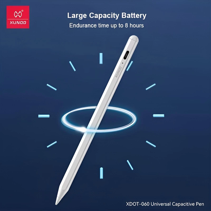 A smart universal capacitive pencil made for smooth writing, sketching, and everyday navigation on most iOS/Android phones and tablets.