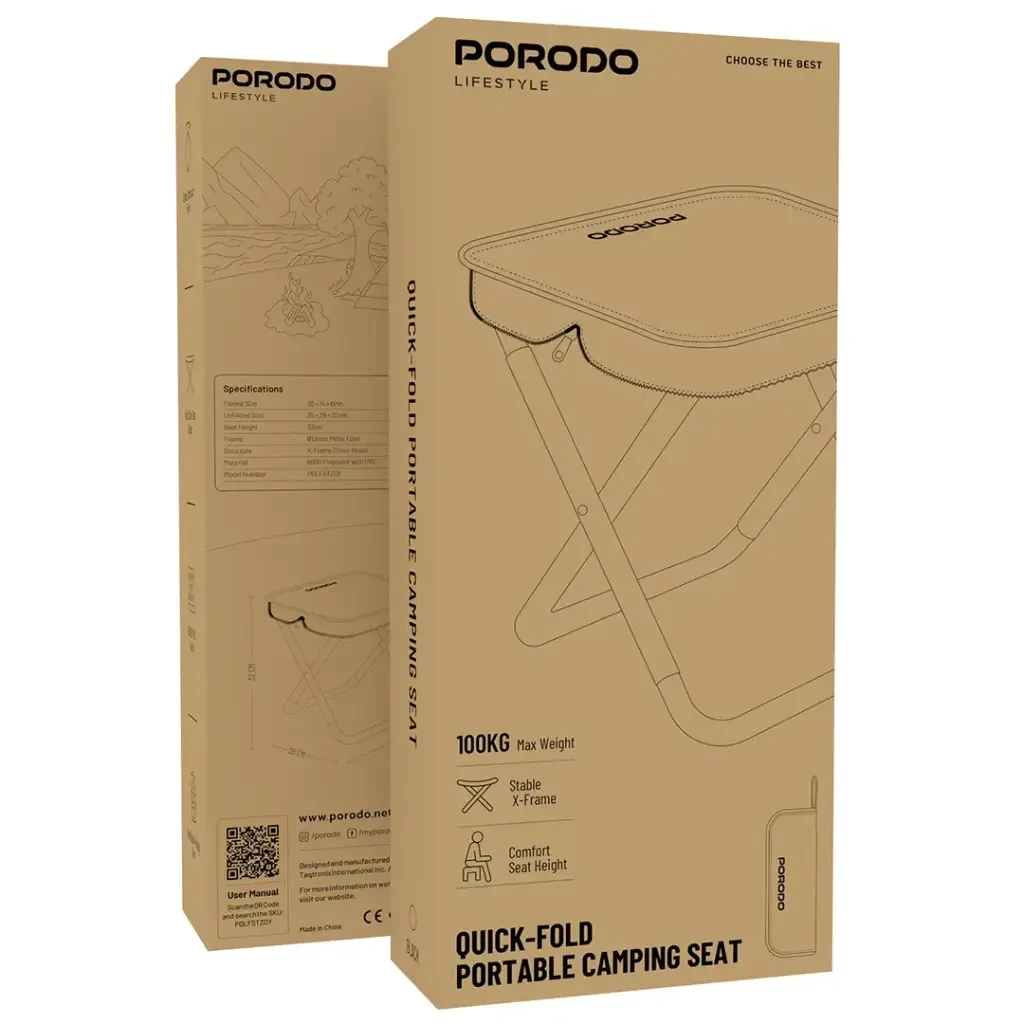 Porodo Quick-Fold Portable Camping Seat (PDLFSTZDY) Black