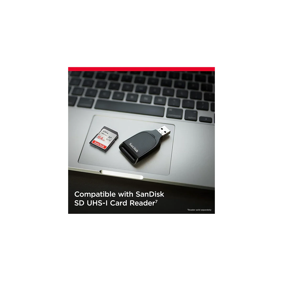 SanDisk Ultra 64GB SDXC UHS-I Card delivers smooth Full HD video and clear photo capture.