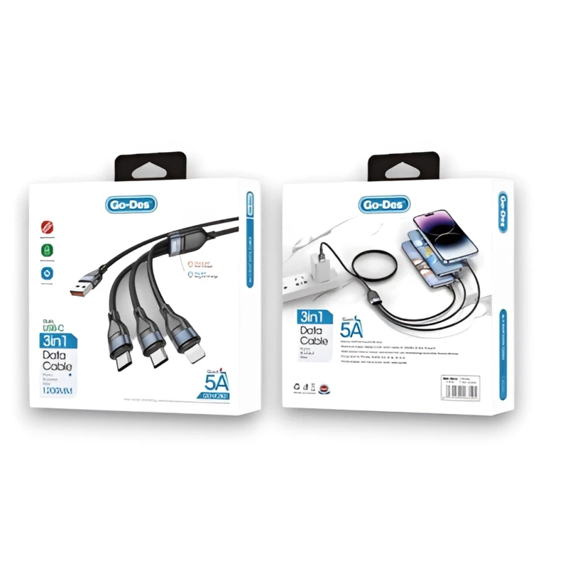 Charge multiple devices easily with the Go-Des 3-in-1 fast cable, made for daily use at home, office, or in the car.