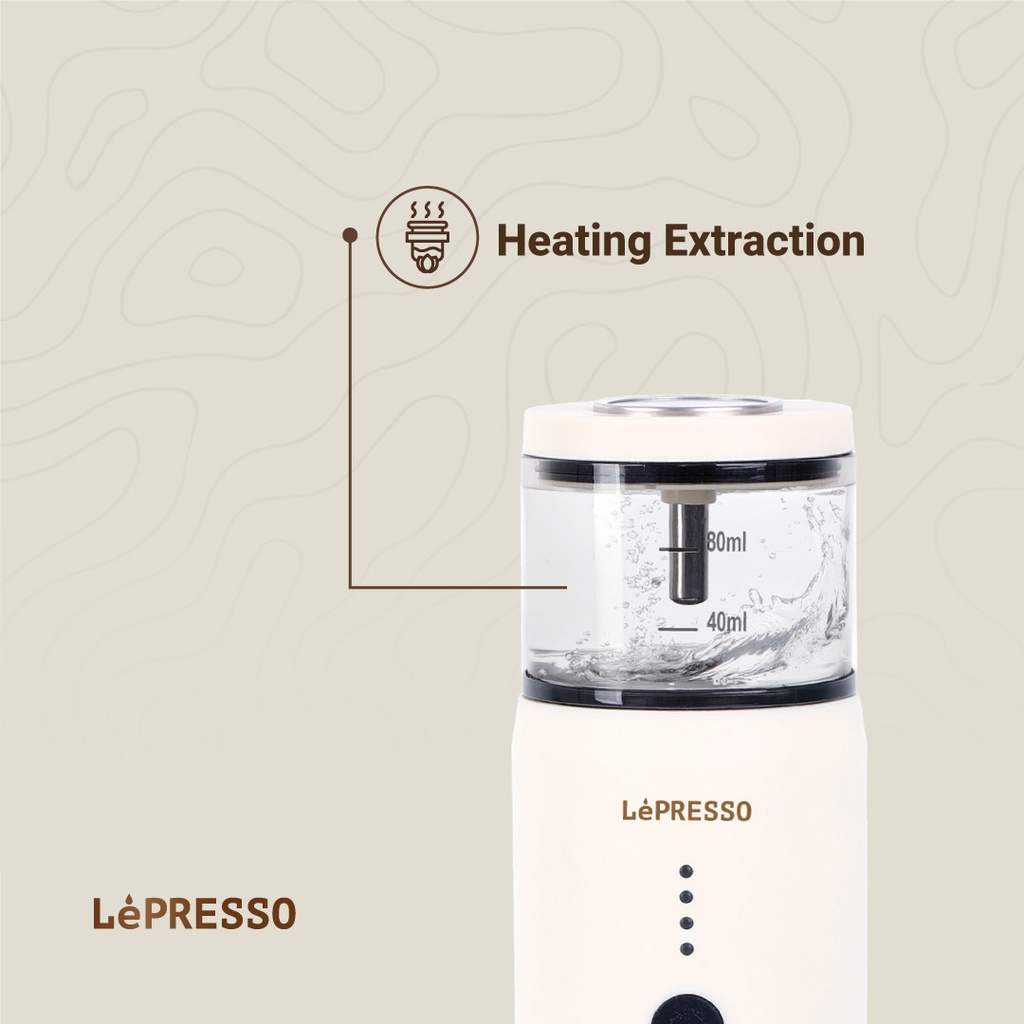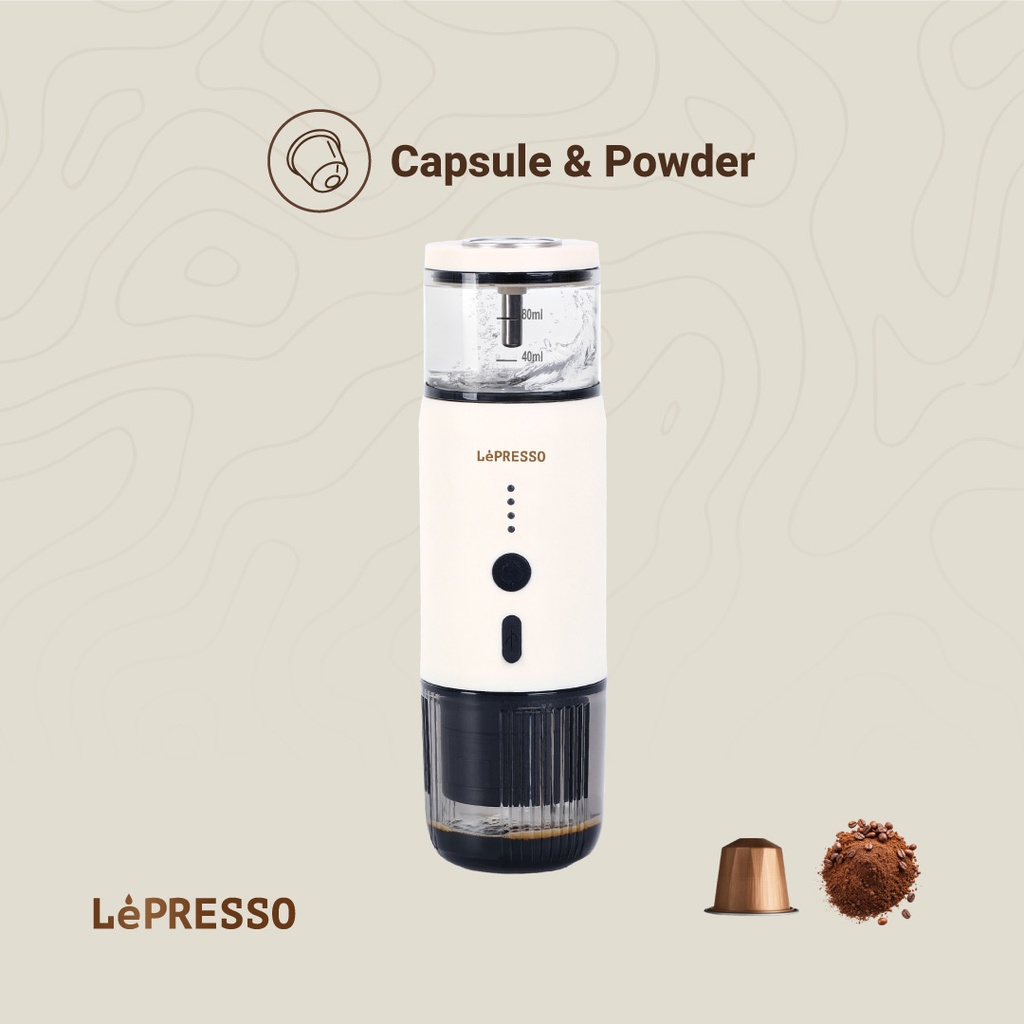 The LePresso portable espresso machine is the perfect travel companion for coffee lovers on the go. Its versatile design makes it compatible with both coffee powder and Nespresso capsules, so you can enjoy your favorite espresso wherever you go. This compact machine is made from food-grade stainless steel and is built to last. Its powerful 2500mAh battery makes long journeys easy. It can prepare up to 200 espressos with warm water and 5 with cold or room-temperature water. It delivers rich, strong coffee every time thanks to its 80ml water tank and 15 bar extraction pressure. It features a 135W power output and a Type-C connector for fast and efficient charging, so your next espresso is always within reach.