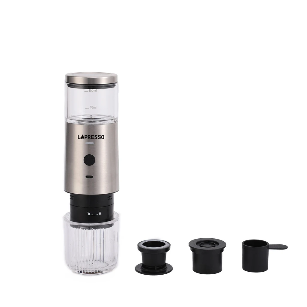 Powered by a 2000mAh rechargeable battery, it can brew multiple espresso shots on a single charge.