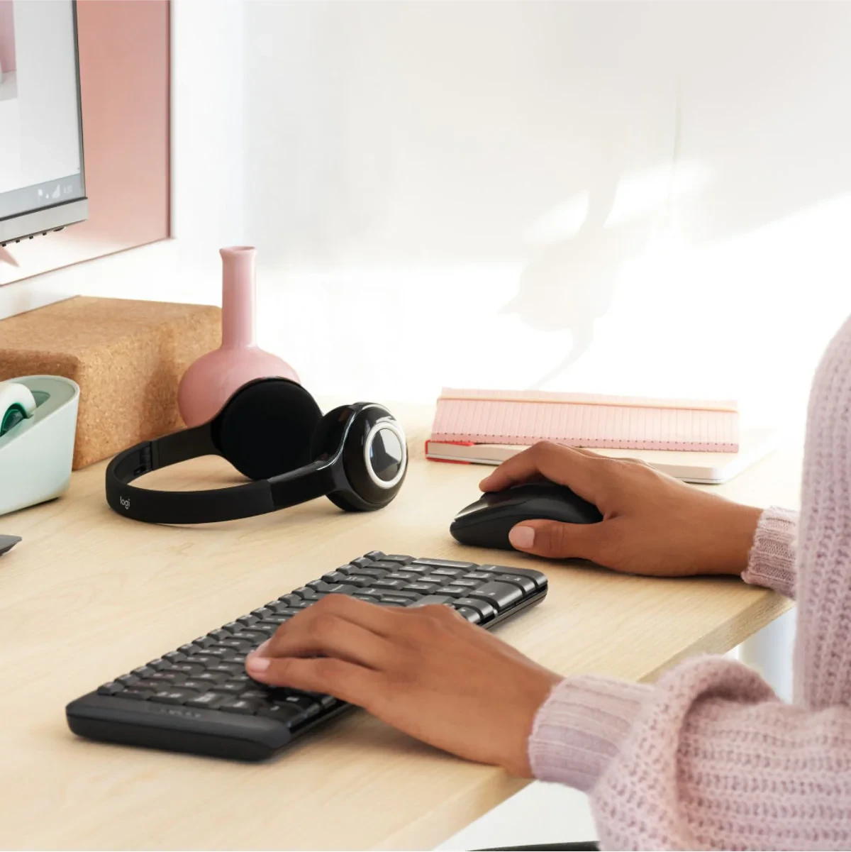 The Logitech MK220 Wireless Keyboard and Mouse Combo offers a compact, reliable, and bilingual typing experience in English and Arabic. Designed to save space without compromising functionality, the keyboard is 36% smaller than standard models but still includes all essential keys, including a full numeric keypad. The 2.4 GHz wireless connection ensures a stable, lag-free experience with a range of up to 10 meters, all through a single nano USB receiver that connects both devices. The keyboard and mouse are built for long-term use, featuring durable keys, 128-bit AES encryption for secure typing, and long battery life—up to 24 months for the keyboard and 5 months for the mouse. The ambidextrous mouse fits comfortably in either hand, making it ideal for home, office, or travel use. With plug-and-play simplicity, just connect the receiver and start working instantly.