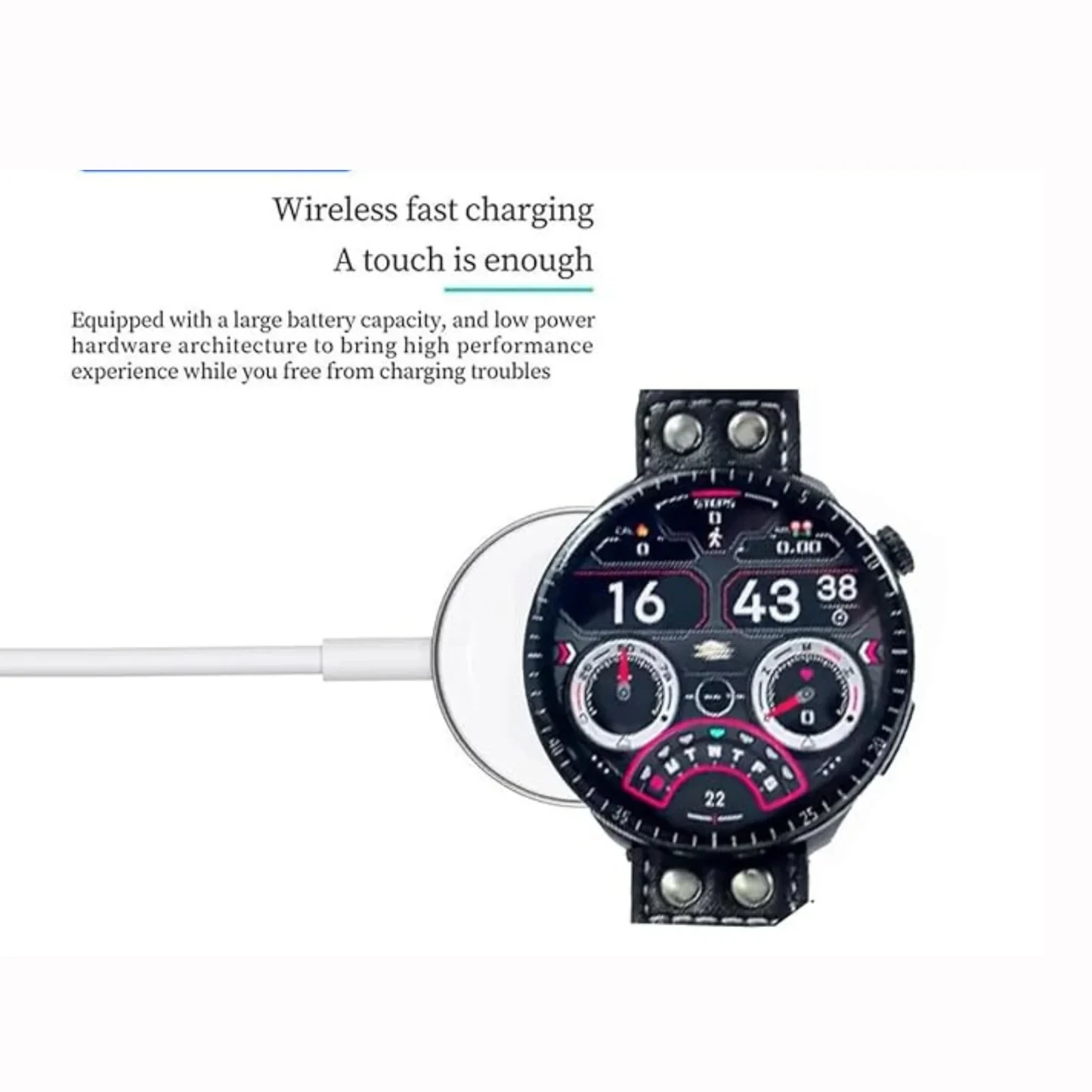 Full Screen 53mm Biggest Round Display Smart Watch With Wireless Charger Designed for Men's and Boys Black