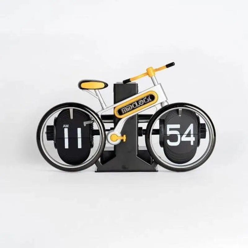 Retro Flip Down Bike Clock – Multifunctional Desk Decor - Colors (Choose which you need) This multifunctional flip clock features a unique bike design, combining timekeeping with decorative charm—perfect for the office, study, or living space. It automatically adjusts time with a smooth page-turning mechanism and operates with mechanical precision for stable, energy-efficient performance. Powered by a single AA battery, it also includes a timing function to enhance time management and productivity. Key Features: Flip-down display with automatic time adjustment Unique bike design for stylish decor Precise, low-maintenance mechanical operation Time management function to boost productivity Ideal for office, study, or desktop use Dimensions: 21 × 8 × 17 cm Powered by 1 AA battery