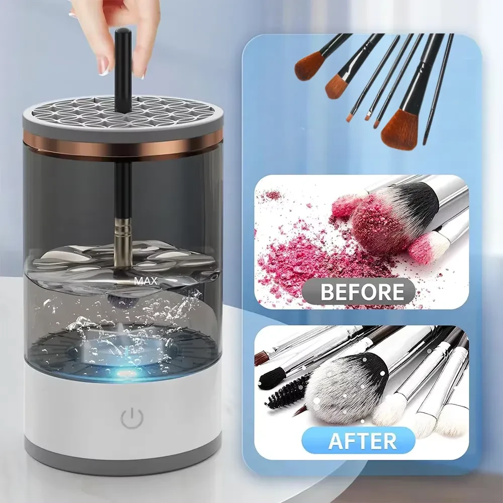 Electric Makeup Brush Cleaner keeps your brushes cleaner and more hygienic in seconds using sonic vibration that helps lift makeup residue and dirt from the bristles. Its USB rechargeable cordless design makes it easy to use at home, while traveling, or for professional makeup kits—helping reduce bacteria buildup and keeping brushes fresh between uses.