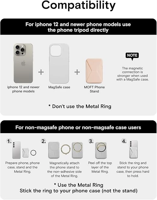The MOFT Snap-On iPhone Stand & Wallet (MOVAS) is a sleek and practical accessory designed to simplify your everyday carry. It features a built-in wallet that holds up to two cards, keeping your essentials within easy reach. The magnetic stand offers three versatile viewing modes—Portrait, Landscape, and Floating—providing hands-free convenience for watching videos or video calls. Designed to attach securely to MagSafe-compatible iPhones with a strong 15 Newton magnetic force, it’s easy to snap on and remove. Made from durable MOVAS™ vegan leather, this accessory combines style and functionality while seamlessly fitting with Apple’s MagSafe cases and other compatible options.