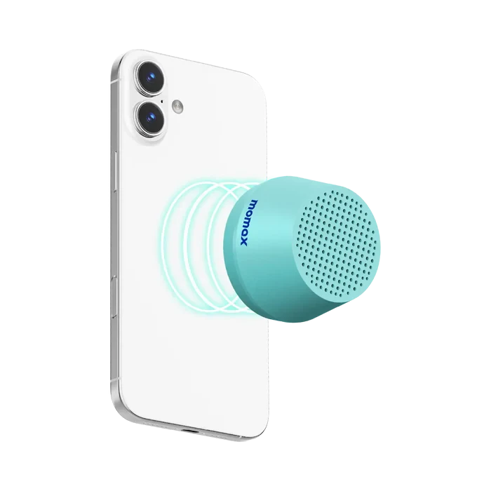 Momax 1-Vibe Go Lite is a compact magnetic wireless speaker made for music on the move. It snaps easily onto metal surfaces or MagSafe-compatible phones, and it even works as an adjustable phone stand for hands-free watching. With TWS pairing, IPX4 splash protection, clear calls, and up to 12 hours playtime, it’s a perfect everyday travel companion.