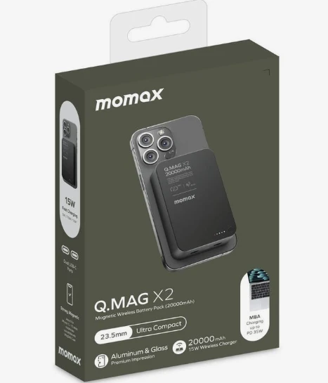 The MOMAX Q.MAG X2 - 20000mAh 15W MagSafe Wireless Power Bank offers fast, reliable, and safe wireless charging for your devices.