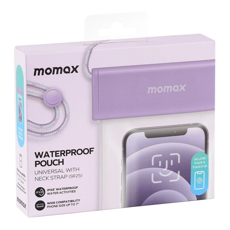 Momax Waterproof Pouch Universal with Neck Strap (SR25) Purple