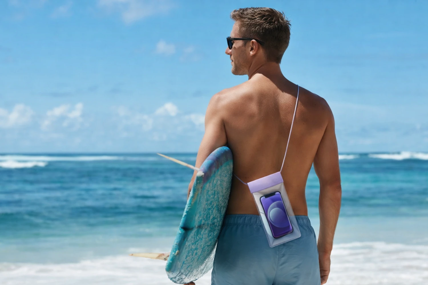 The Momax waterproof pouch is designed to protect your phone and small essentials during beach trips, swimming, travel, and outdoor activities. It features a secure triple-sealed closure to help prevent water from entering, along with an adjustable neck strap for comfortable hands-free carrying. The universal design fits a wide range of phones and allows you to use the touchscreen while the phone stays inside, with Face ID and Touch ID support depending on your device.