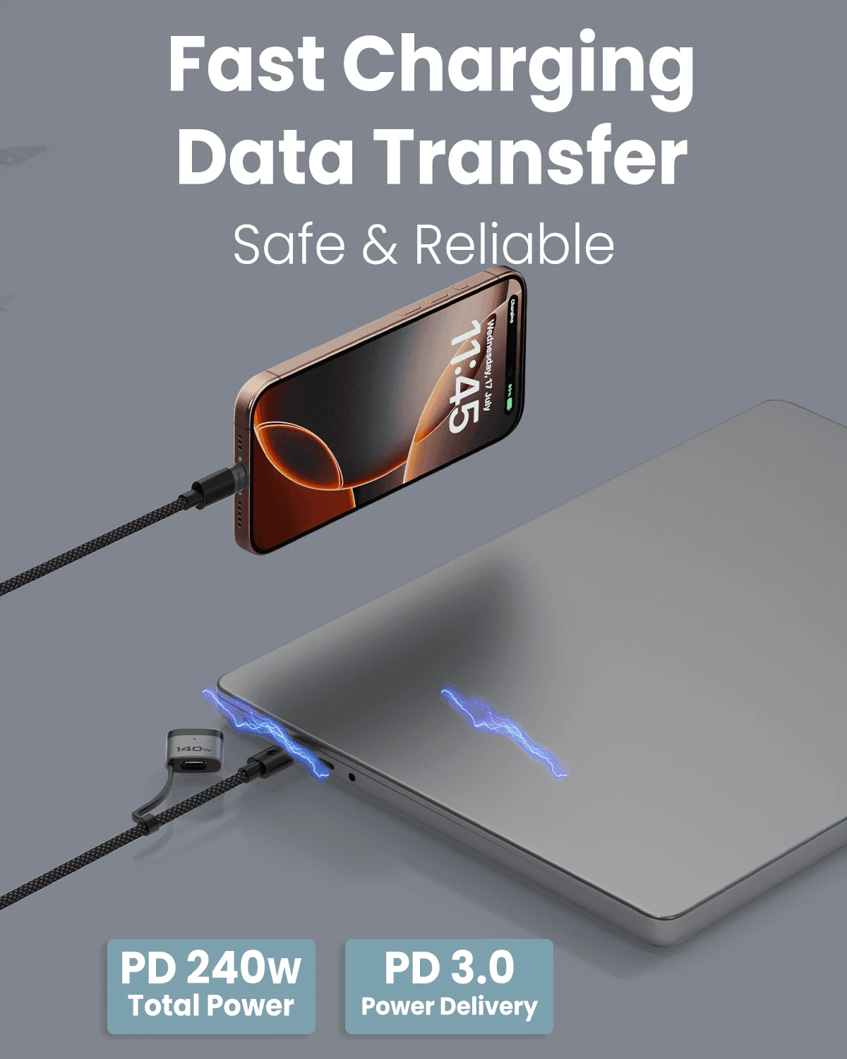 • Multiple Protection: We prioritize the safety of your devices. Our 2 in 1 charging cable includes built-in protection against overvoltage, overcurrent, and short circuits, giving you peace of mind during the charging process. In certain cases, a brief 15-20 second delay is a reassuring sign that our magnetic safety mechanism is actively protecting your laptop.