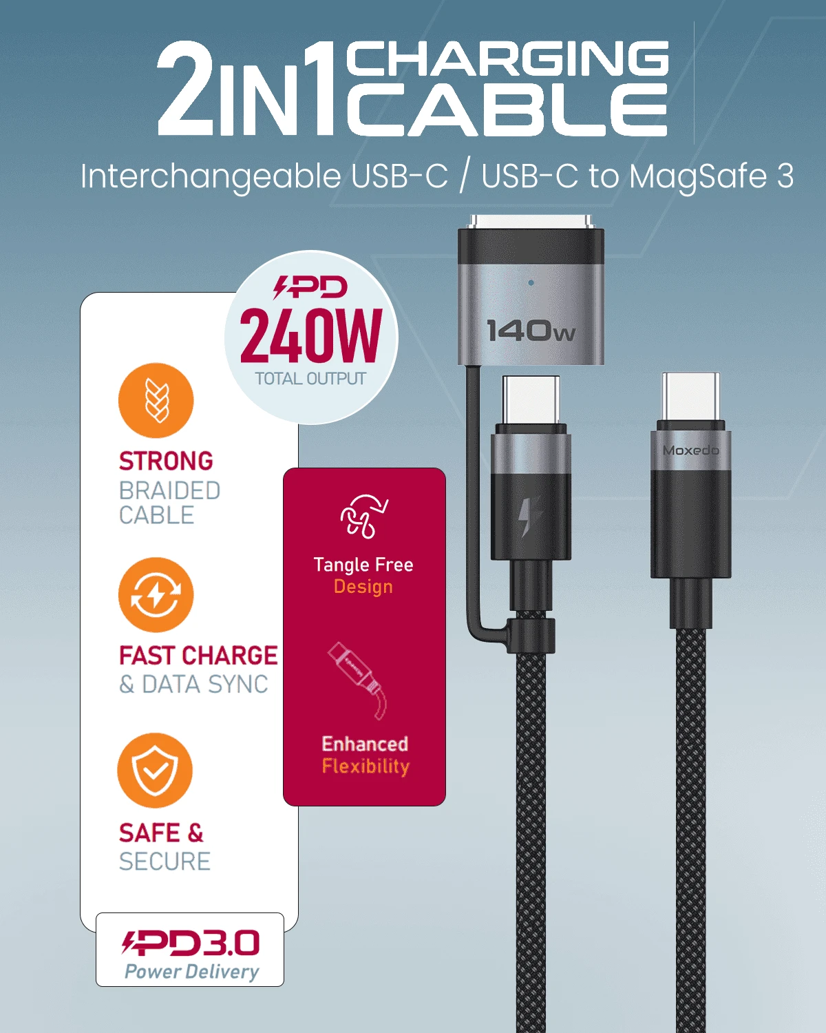 Moxedo 2 in 1 Charging Cable USB-C/USB-C to Magsafe 3 (2m)