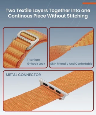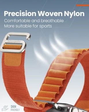The Moxedo Alpine Loop Watch Band offers a rugged and comfortable design, crafted from two textile layers woven seamlessly into a single piece without stitching. It features a premium, corrosion-resistant Titanium G-Hook and metal connectors, ensuring a secure fit during various activities. Compatible with a range of Apple Watch sizes 44mm,45mm and 49mm.