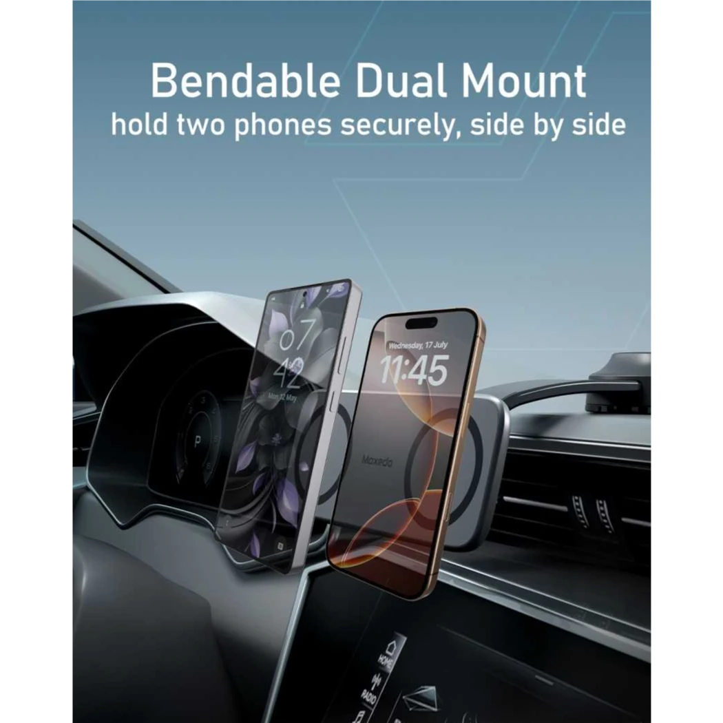 Offers dual mounting options: air vent or dashboard base.