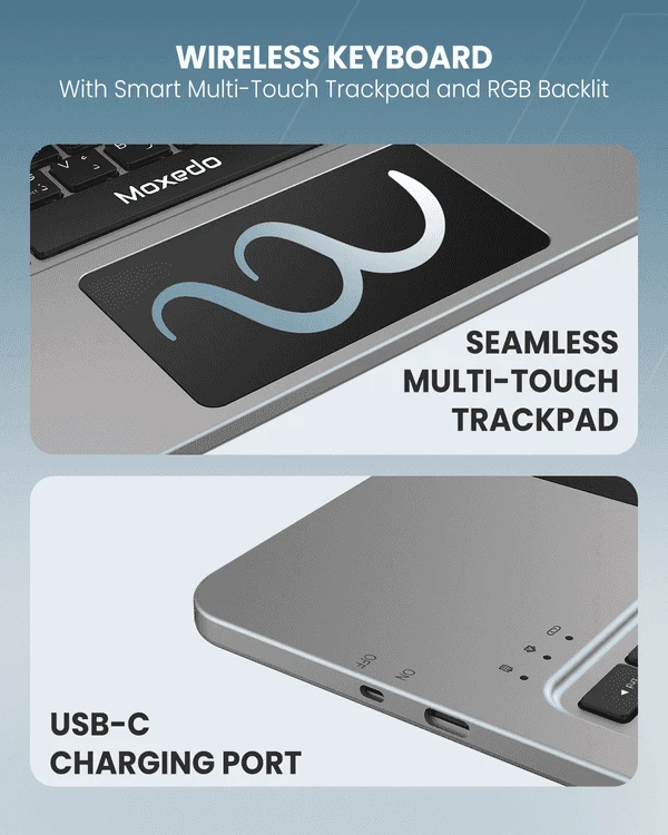 Multi-View Stand Keyboard Case: Our Moxedo Magic wireless keyboard case is compatible with the iPad 13 Air 2024/ iPad 12.9 Pro and features a flip cover magnet separation design with three different standing angles built into the bottom of the case to ensure a comfortable viewing angle - for typing, reading, and gaming - providing you with amazing versatility. Easily adjust to the comfortable angle that works best for you. Perfect for working, writing or watching videos at work, school, travel and at home.