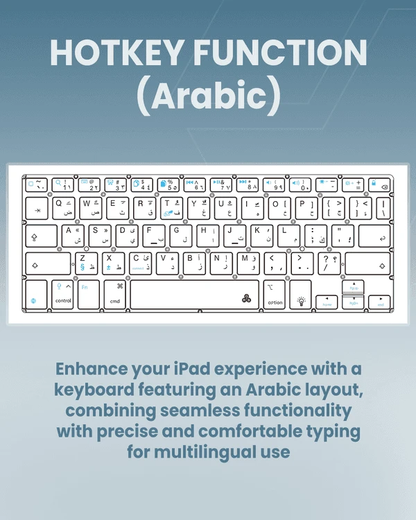 Arabic Touch Pad Keyboard: Carve English and Arabic characters for you. It adopts a sensitive touch pad design and flexible touch, which is convenient for you to edit documents, browse web pages, watch videos, etc. without additional mouse, it will bring you greater convenience. The magic wireless keyboard adopts stable Bluetooth 3.0 technology, and the working distance can reach 10m.