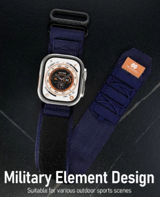 The Moxedo Tactical Sports Rugged Strap is designed for Apple Watch users seeking durability and comfort. Inspired by military tactical gear, it features a woven nylon canvas construction with stainless steel connectors and buckle, ensuring a secure fit during various activities. The breathable, skin-friendly material offers a comfortable wrapping feeling around the wrist. The strap's unique design includes a woven pattern and reflective label, adding a touch of individuality. Its ultra-strength hook-and-loop closure prevents slipping or loosening, making it suitable for sports enthusiasts and everyday wearers alike. Compatible with a range of Apple Watch sizes 44mm,45mm and 49mm.