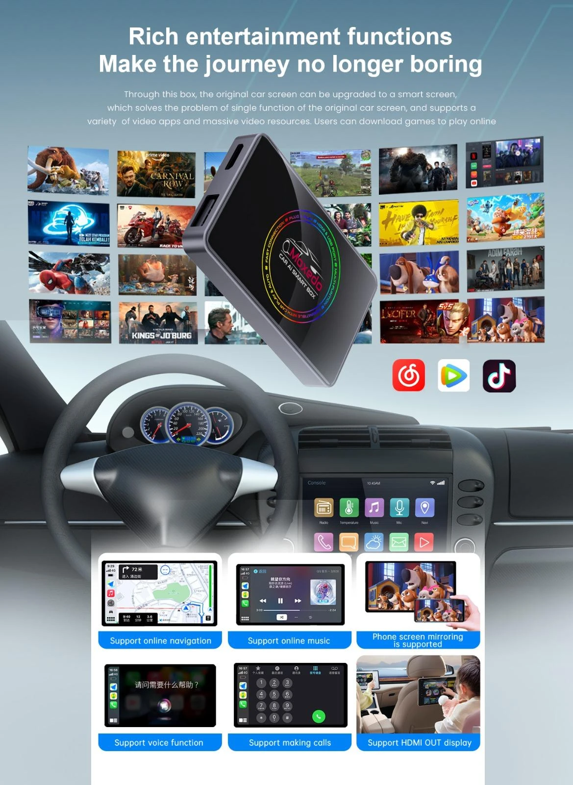 Dual-Band 5G WiFi for Seamless Connectivity With advanced dual-band 5G WiFi support, the device ensures ultra-fast and stable wireless connectivity. This feature is ideal for uninterrupted CarPlay, Android Auto, online media streaming, and other internet-based functions, even in high-traffic networks.