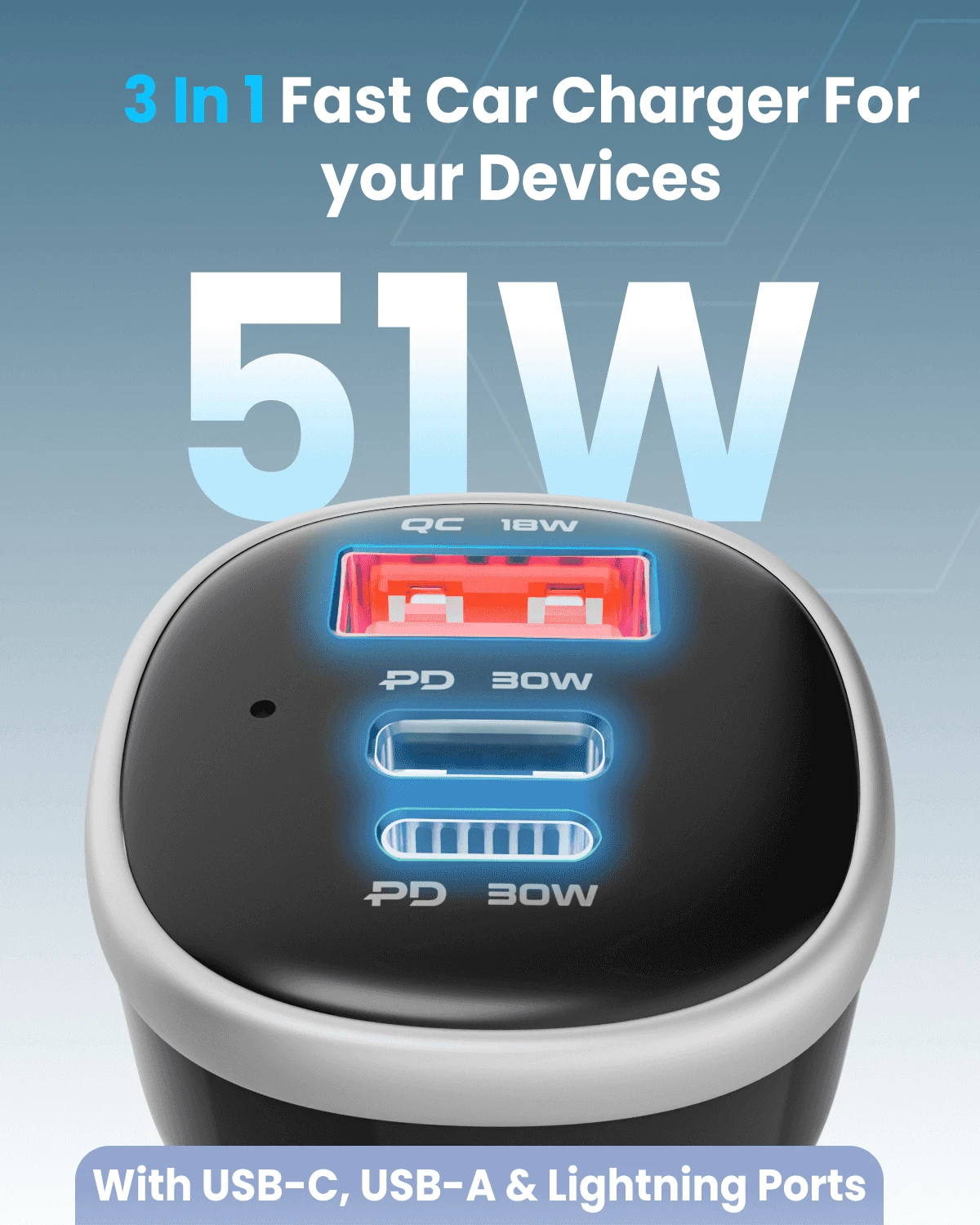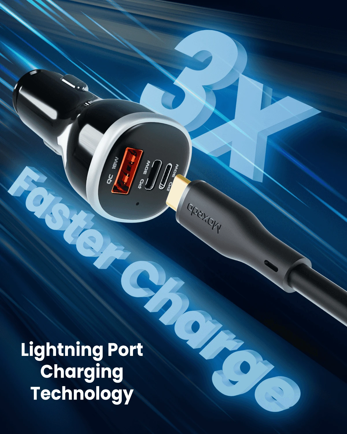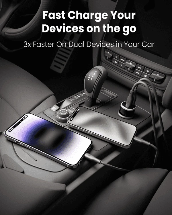 The Moxedo 51W Ultra-Fast Car Charger is a compact and efficient device designed to charge multiple devices simultaneously.