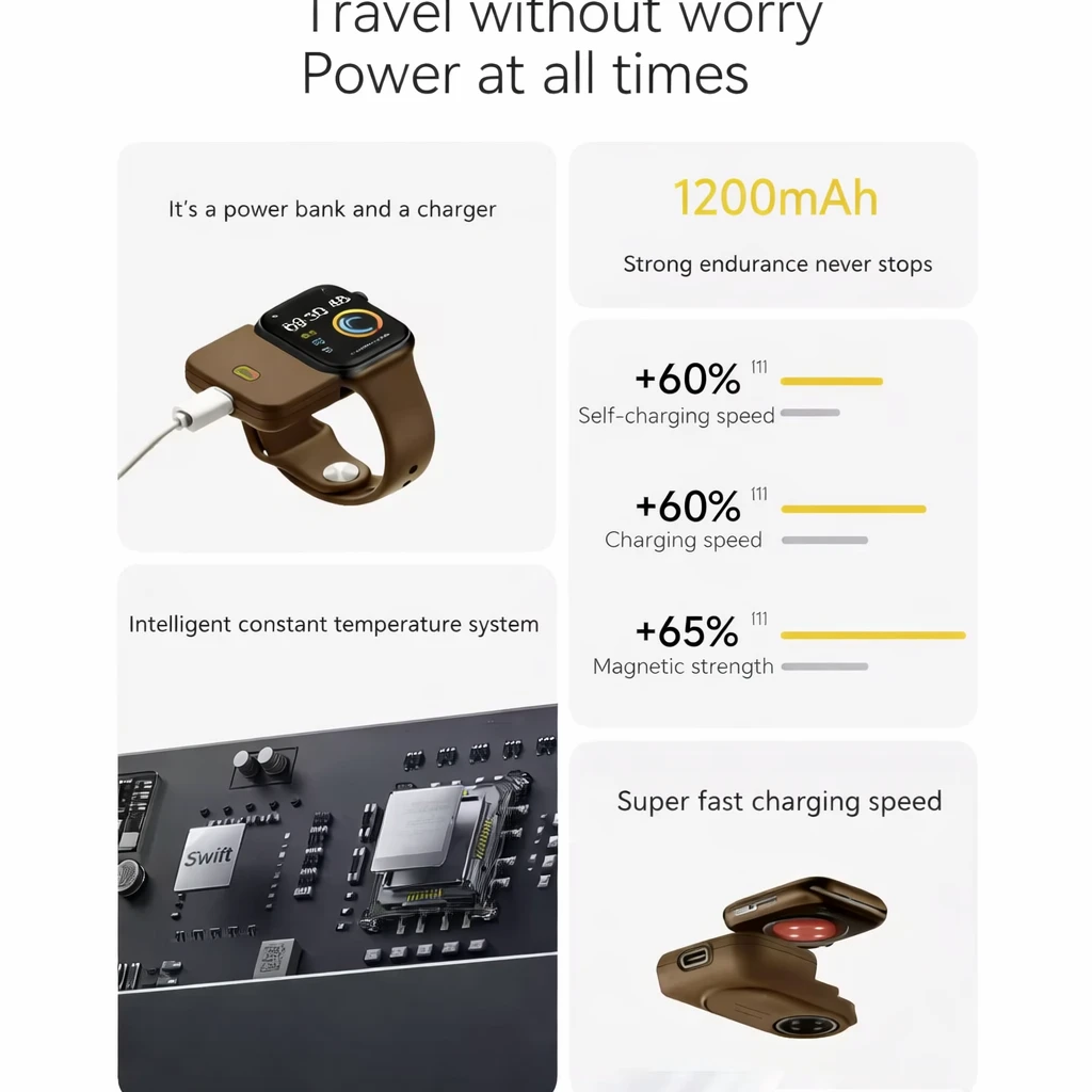 NAIDUN 1200mAh Power Bank Case for Apple Watch 44/45mm - Brown